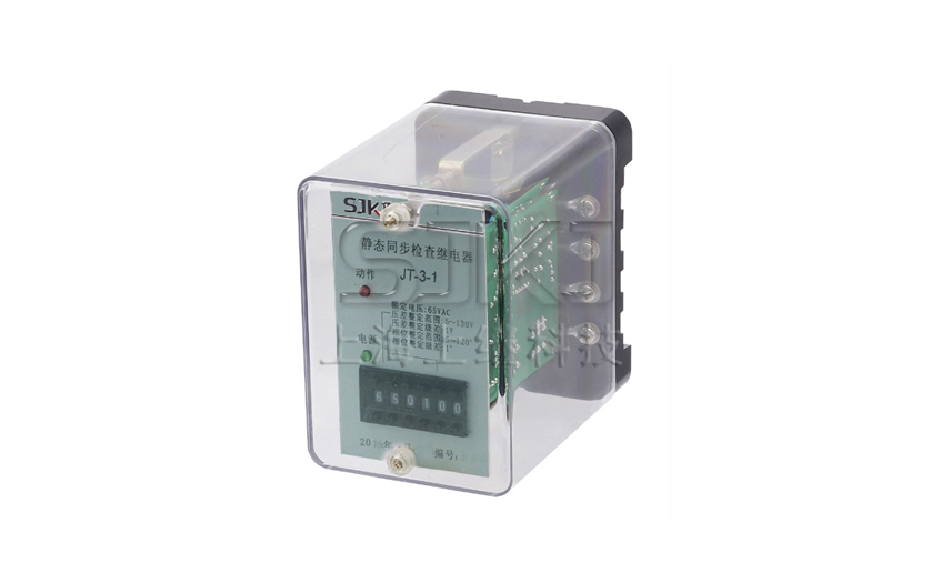 JT-3靜態(tài)同步檢査繼電器為靜態(tài)型瞬動繼電器,工作原理:通過數(shù)字電路處理處一個相位差(或電壓差)與設定值相比,達到同步檢査目的。