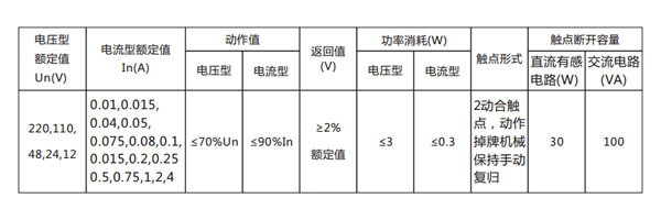 繼電器主要技術(shù)數(shù)據(jù)見表