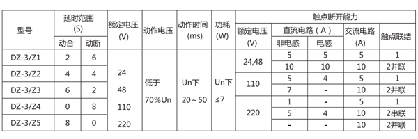 DZ-3/Z1中間繼電器主要技術能見表